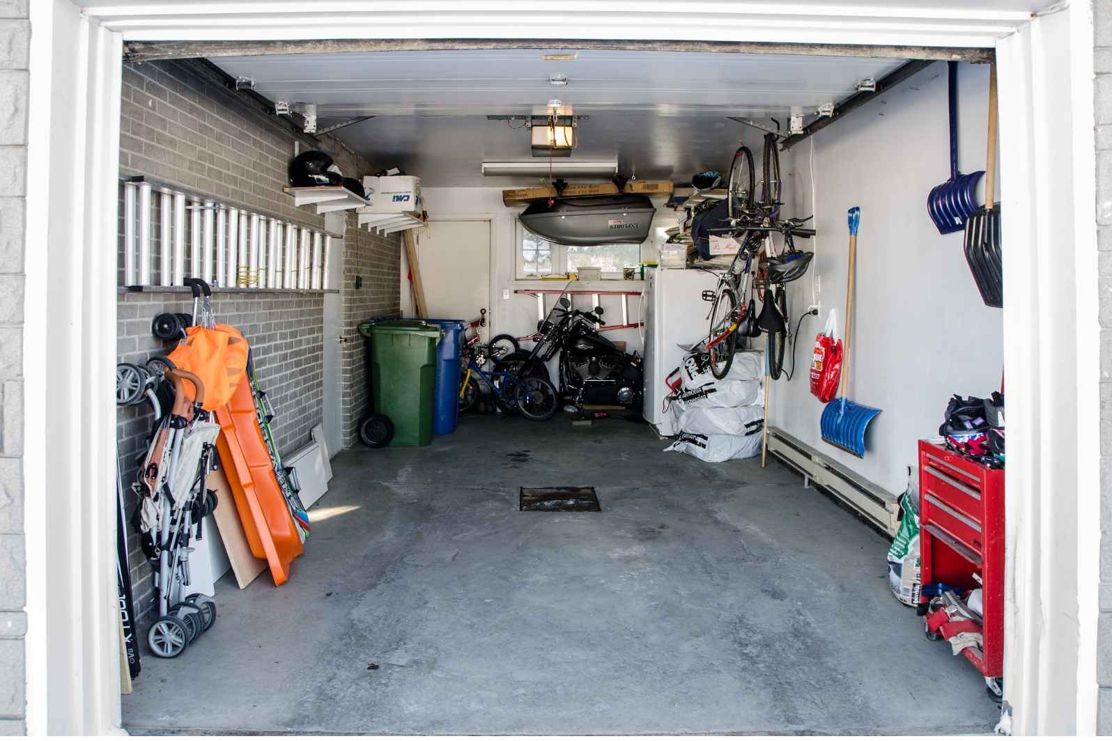 It’s because the first step in any garage makeover is to clear out the clutter. Remove everything, and decide what to keep, donate or toss. Be strict with your choices. If you haven’t touched it in years, let it go. An empty garage will tell you how much space you really need.